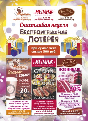 Приятное приглашение! Приглашаем в кофейни Марсель, Шоко Пралине, ресторан Меланж, приятная атмосфера, вкусные доступные блюда!