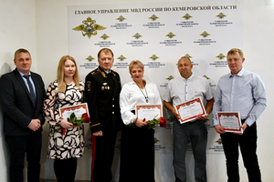 Все четверо кузбассовцев были приглашены на заседание Общественного совета при ГУ МВД России по Кемеровской области - Кузбассу для участия в церемонии награждения. Начальник областного полицейского Главка генерал-лейтенант полиции Геннадий Корниенко и председатель Общественного совета при Главном управлении Дмитрий Осипов поблагодарили Ирину Константинову, Галину и Дениса Ледовских, а также Сергея Зайцева за активную гражданскую позицию, вручили почетные грамоты и ценные подарки.