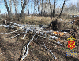 В Межмуниципальный отдел МВД России «Юргинский» поступили материалы проведенной органами прокуратуры проверки о выявлении на территории урочища Новоромановское Юргинского лесничества незаконной рубки леса. Установлено, что незаконно вырублены 11 берез. Сумма причиненного ущерба, причиненного лесному фонду, составила 92 000 рублей.