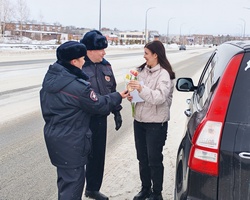 Сотрудники Госавтоинспекции МО МВД России «Юргинский» поздравили женщин с Международным женским днем.