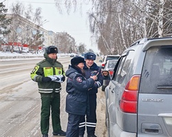 В праздничный день сотрудники Госавтоинспекции МО МВД России «Юргинский» совместно с представителями 170 Военной автомобильной инспекции г. Юрги поздравили водителей с Днем защитника Отечества.